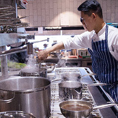 Receiving significant media attention, the famed Peter Gilmore custom designed this MKN 'Kuchenmeister' stove based on the requirements of the Bennelong Kitchen. The 3.3m x 2.3m stove is the beating heart of Bennelong's kitchen. Delivered in 3 pieces due to site constraints, the stove was then welded together on site by a specialist MKN technician.