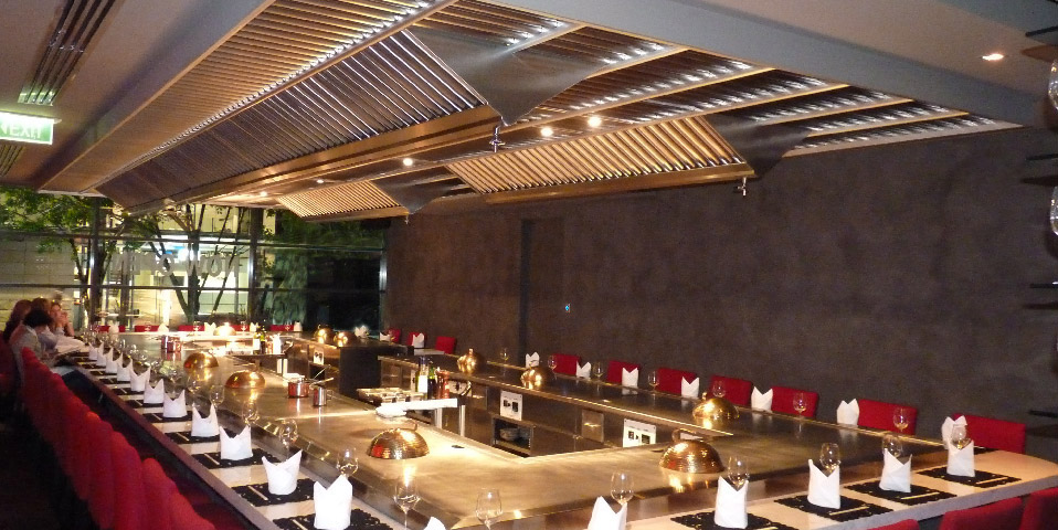 An exceptional project to work on, Phoeniks developed and installed the ventilated ceiling exhaust system above the expansive Teppanyaki tables. This solution, normally designed for commercial kitchens, combined modern aesthetics with ease of cleaning and low-noise.