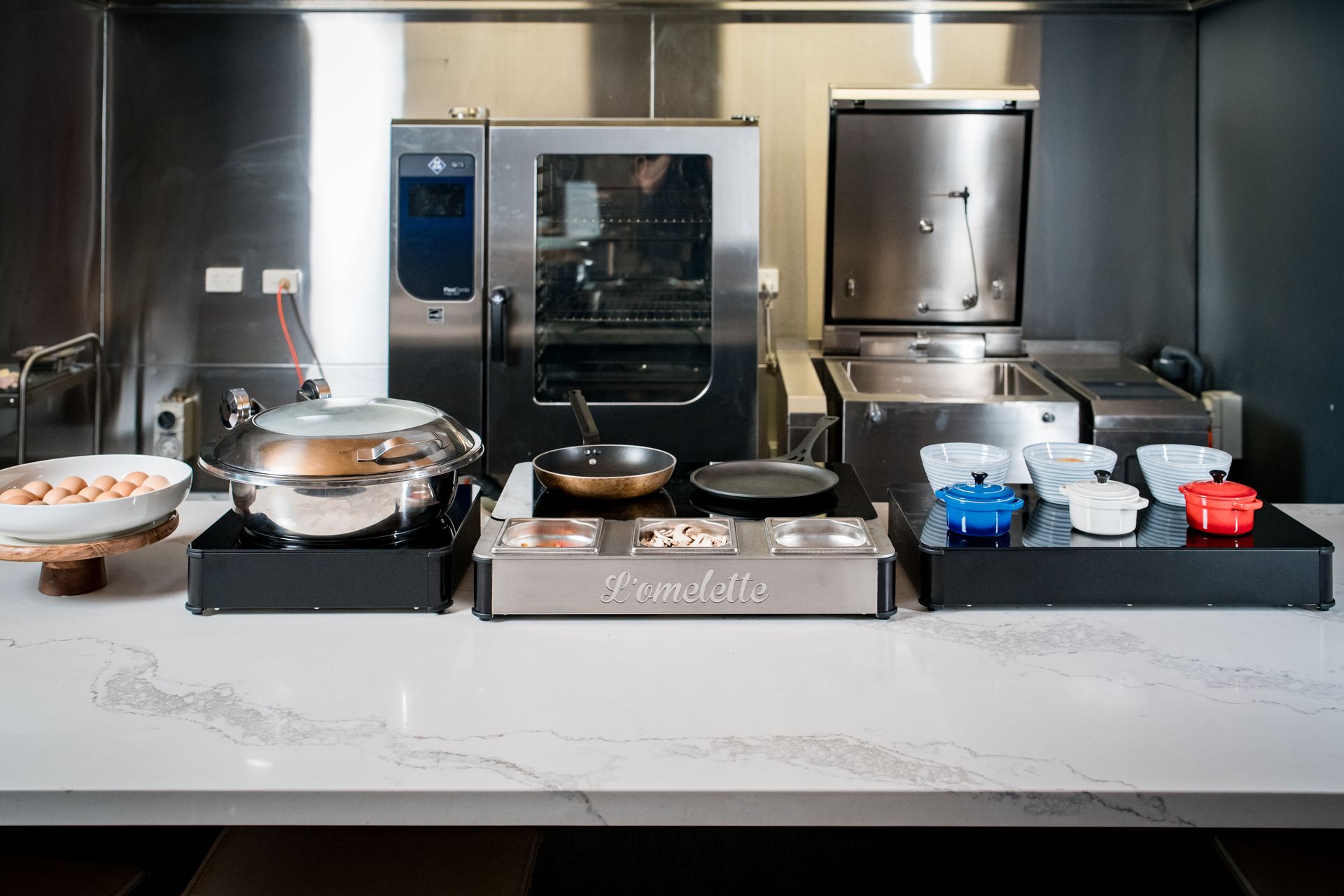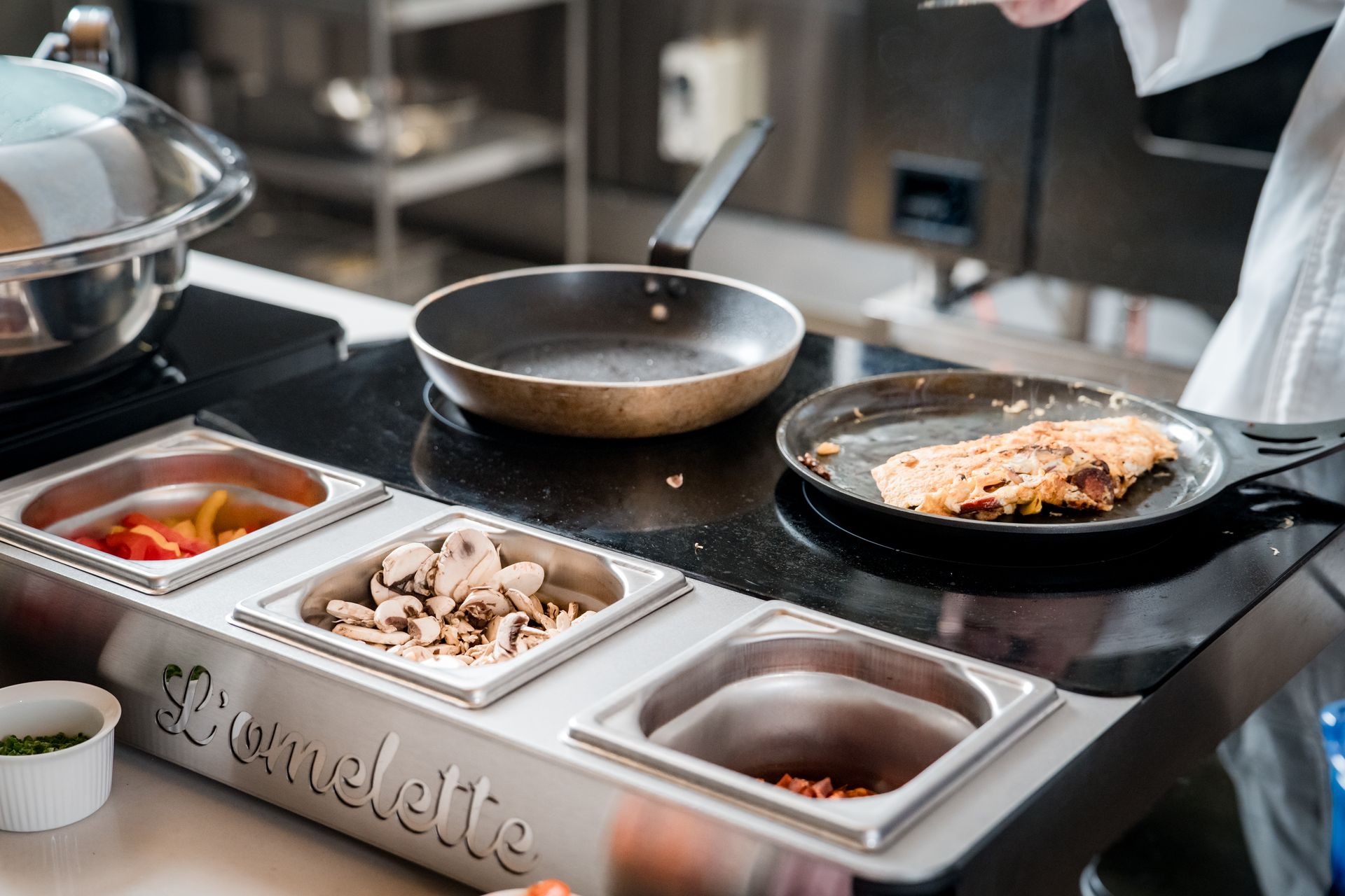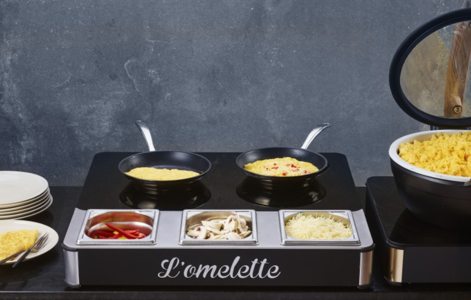 The Adventys Egg Station is a French-made culinary innovation designed to bring style, efficiency and interaction to hotel buffet and live cooking spaces. Featuring two high-performance induction cooking zones and modular gastronorm containers, it gives chefs the flexibility to prepare a wide variety of dishes like omelettes, pancakes, pasta and more right in front of guests.