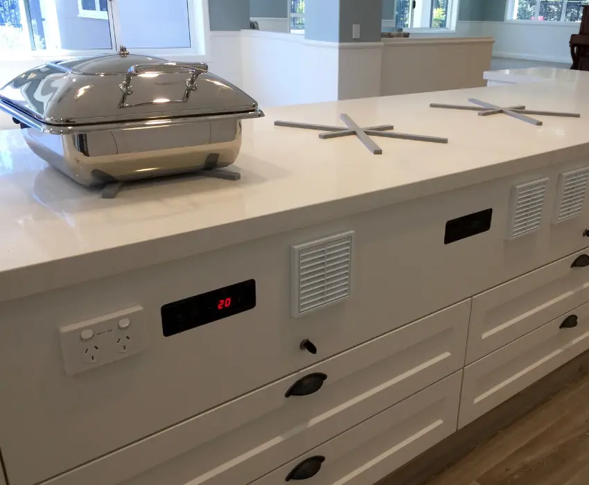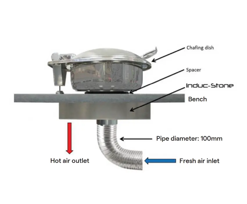 This rapid cool down also adds an important layer of safety. If someone touches the bench top shortly after a chafing dish and thermal spacer have been removed, they won't risk burning themselves. It's a smart, practical feature that makes the Induc'Stone a safer choice for aged care, hotels, catering as well as other high traffic environments.
