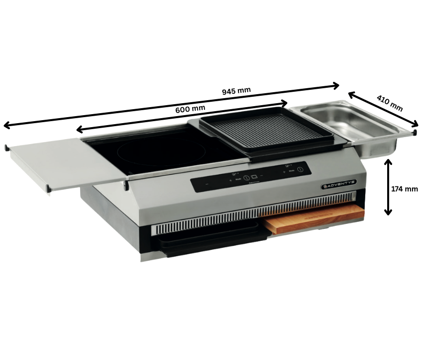 The Adventys Octopus offers exceptional versatility with its range of cast iron plancha and grill accessories, designed to elevate your cooking experience. These durable, professional-grade plates ensures even heat distribution and superior heat retention, delivering perfect searing, caramelisation and grilling results every time.