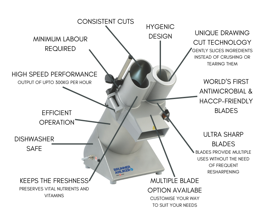 Advanced drawing cut technology ensures that each slice retains its natural nutrients, colour and texture, delivering consistently high-quality results. By minimising cell damage during processing, the Brunner Anliker XL C helps ingredients stay fresh for longer, preserving their flavour, appearance and nutritional value. Its precision cutting system, combined with a versatile range of inserts, allows even large volumes to be prepared without compromising quality, making it ideal for professional kitchens that demand efficiency without sacrificing product integrity. the result is food that not only looks and tastes exceptional but also maintains its healthful properties demo prep to plate.