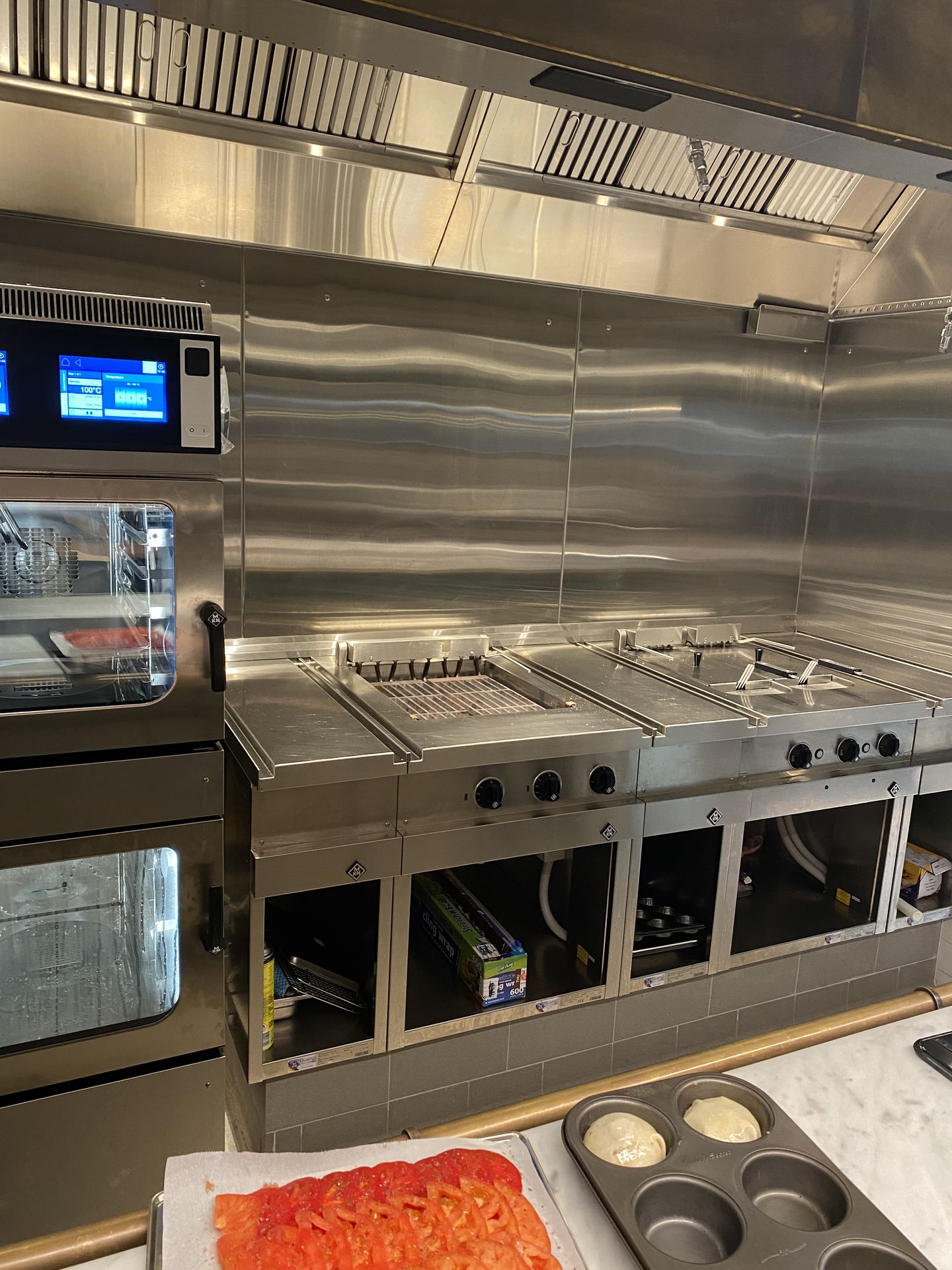 Objective: Design and deliver all-electric kitchen that supports modern sustainability goals while ensuring efficiency and performance. With the kitchen being fully visible to diners, an emphasis was placed on creating an open kitchen environment that is both functional and visually impressive. By integrating innovative cooking equipment - including high-quality induction and advanced electric appliances, the project needed a balance of reliability, energy efficiency and attractive visuals.