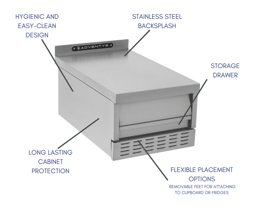- Integrated Storage: Keeps utensils and accessories organised and with easy reach.