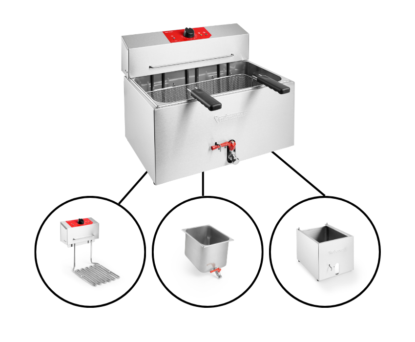 The Valentine TF13 Fryer is built around an intelligent three part modular system with a seperate control unit, pan and chassis making each component easy to remove, handle and clean. This smart design dramatically reduces downtime in busy kitchens, letting chefs focus on cooking rather than maintenance. Hygiene and durability are at the main focus of its construction: the stainless steel and and frame are dishwasher safe, ensuring deep, consistent cleaning while keeping frying performance at its peak. Seamless, robust and built to last, the TF13 combines simplicity, safety and efficiency for professional kitchens that demand reliable, high-performance frying with minimal fuss.