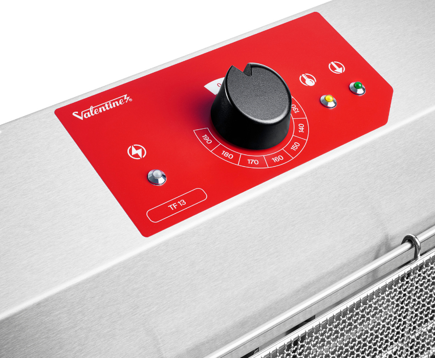 The Valentine TF13 Fryer makes precise frying effortless with its intuitive single-dial control and bright LED indicators that provide clear, real time feedback. Its advanced Dialog System keeps operators informed at a glance, streamlining workflow, reducing errors and ensuring consistently perfect results. Designed for busy professional kitchens, the TF13 helps maintain efficiency and productivity even during peak service periods.