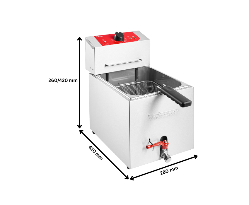 Introducing the Valentine Table Top Fryer TF7 Turbo - the perfect blend of performance and precision for professional kitchens and food service environments. Designed to deliver fast, consistent frying with minimal space requirements, the TF7 Turbo brings commercial grade power to your countertop. With its robust heating system, intuitive control and easy-to-clean construction, this table top fryer ensures crispy, golden results every time whether you are frying chips, seafood, snakes or signature dishes.